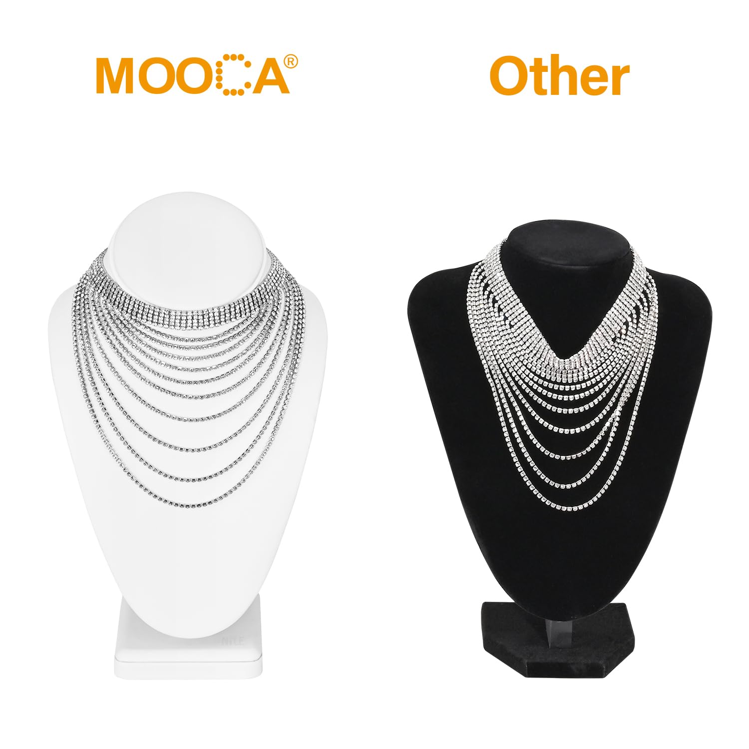 MOOCA 2 Pcs Deluxe Medium Necklace Chain Jewelry Display Holder, Jewelry Stand, Necklaces Display Mannequin Bust Stand, White Faux Leather