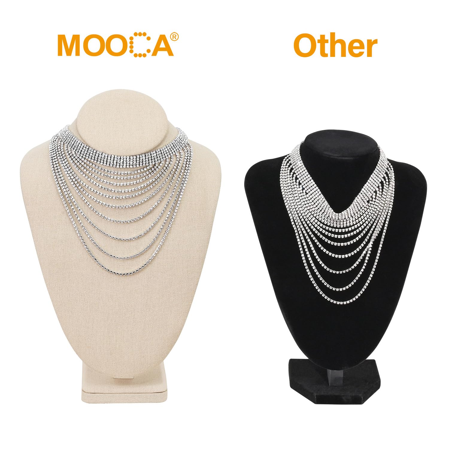 MOOCA 2 Pcs Necklace Chain Jewelry Bust Display Holder Stand, Display Mannequin, Necklace Bust Stand, Pendant Chain Organizer for Women, Tan Linen