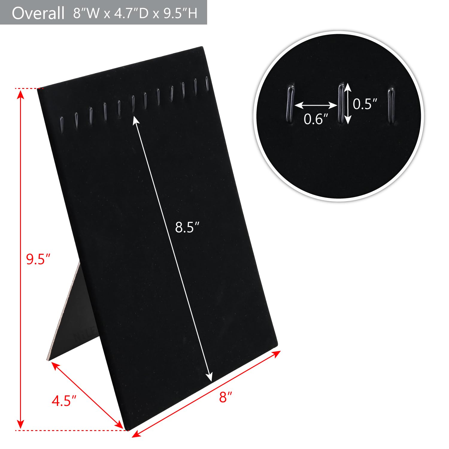 - 12-HOOK BRACELET DISPLAY: This display stand can hold up to 12 elegant bracelets. It features a sturdy easel stand wrapped in deluxe black velvet for a sophisticated presentation.