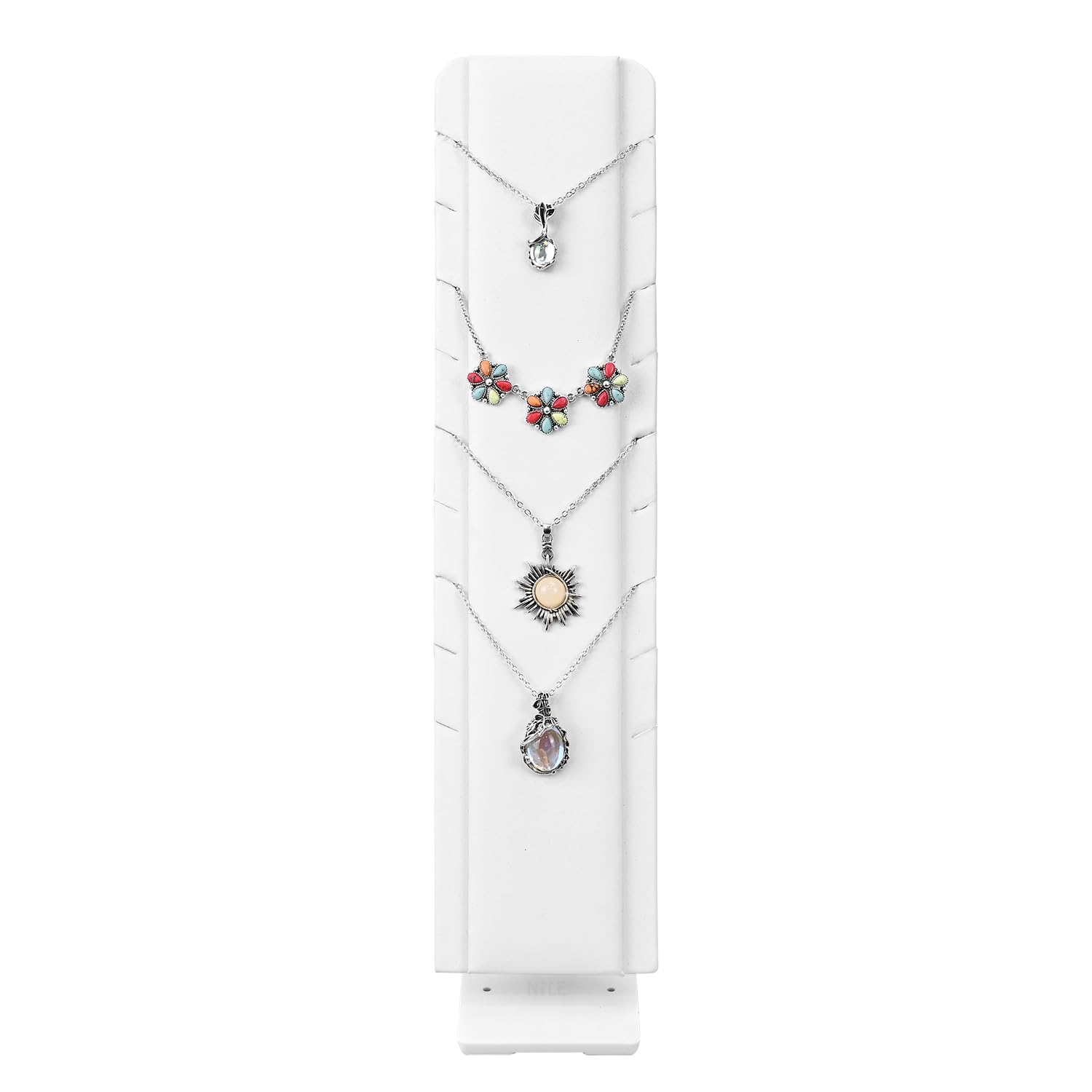 - 2 PCS SET NECKLACE STAND - Display up to 9 necklaces. The angle of the stand is adjustable to fit different heights of counters.