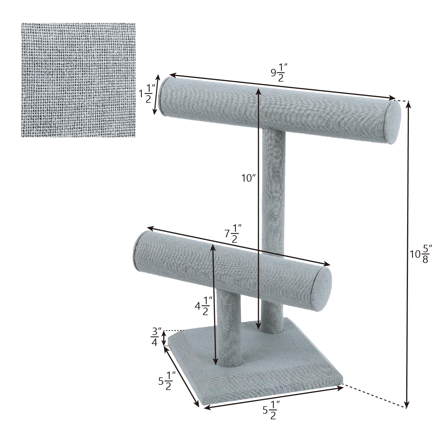 MOOCA 2 Tier Wooden Jewelry Display T-Bar Bracelet Necklace Holder Jewelry Organizer Display Stand, Dim Grey Linen