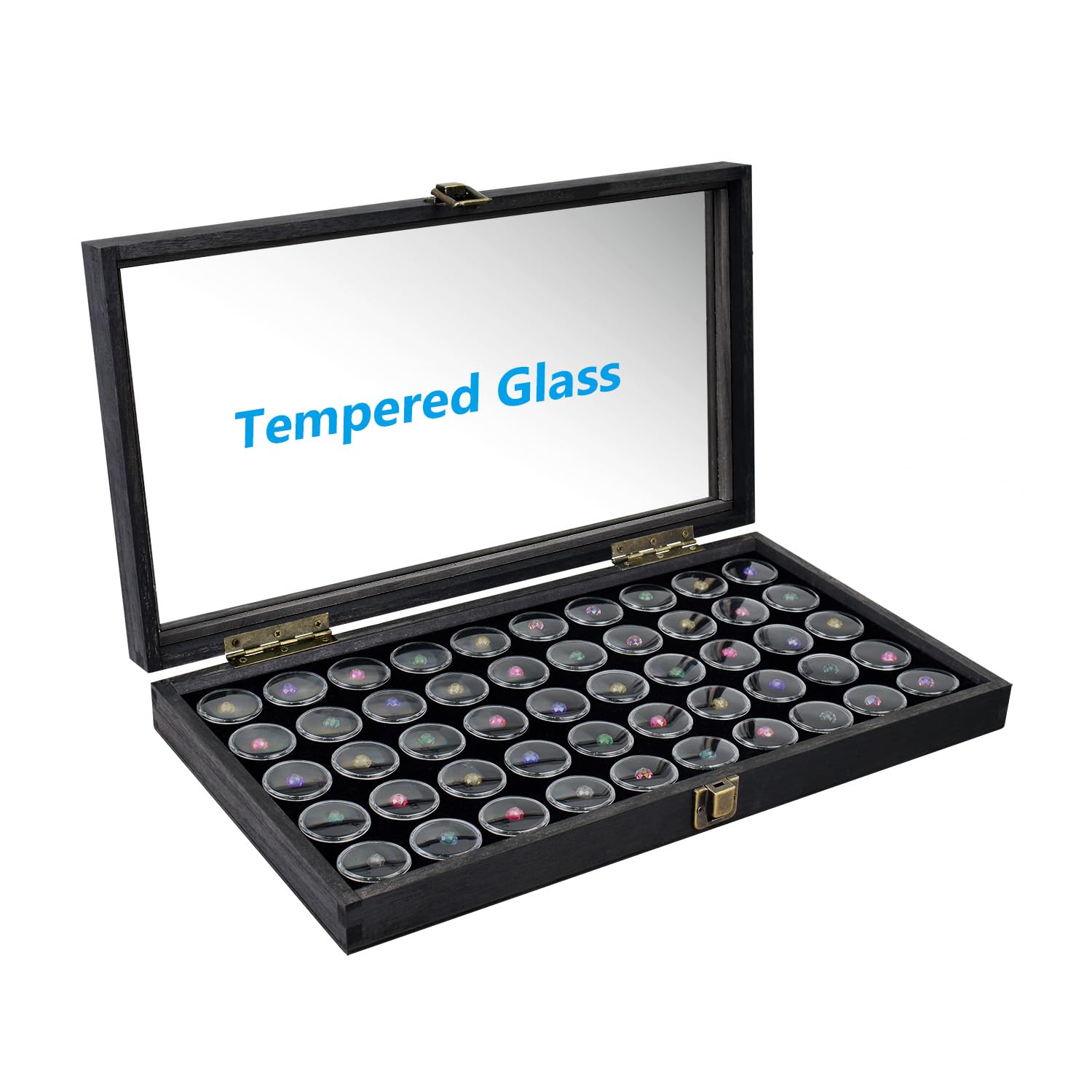 - COLLECTION ORGANIZER BOX - This organizer box features a glass top display case along with 50 gem jar tray liner, making it an ideal choice for storing and showcasing your valuable collection.