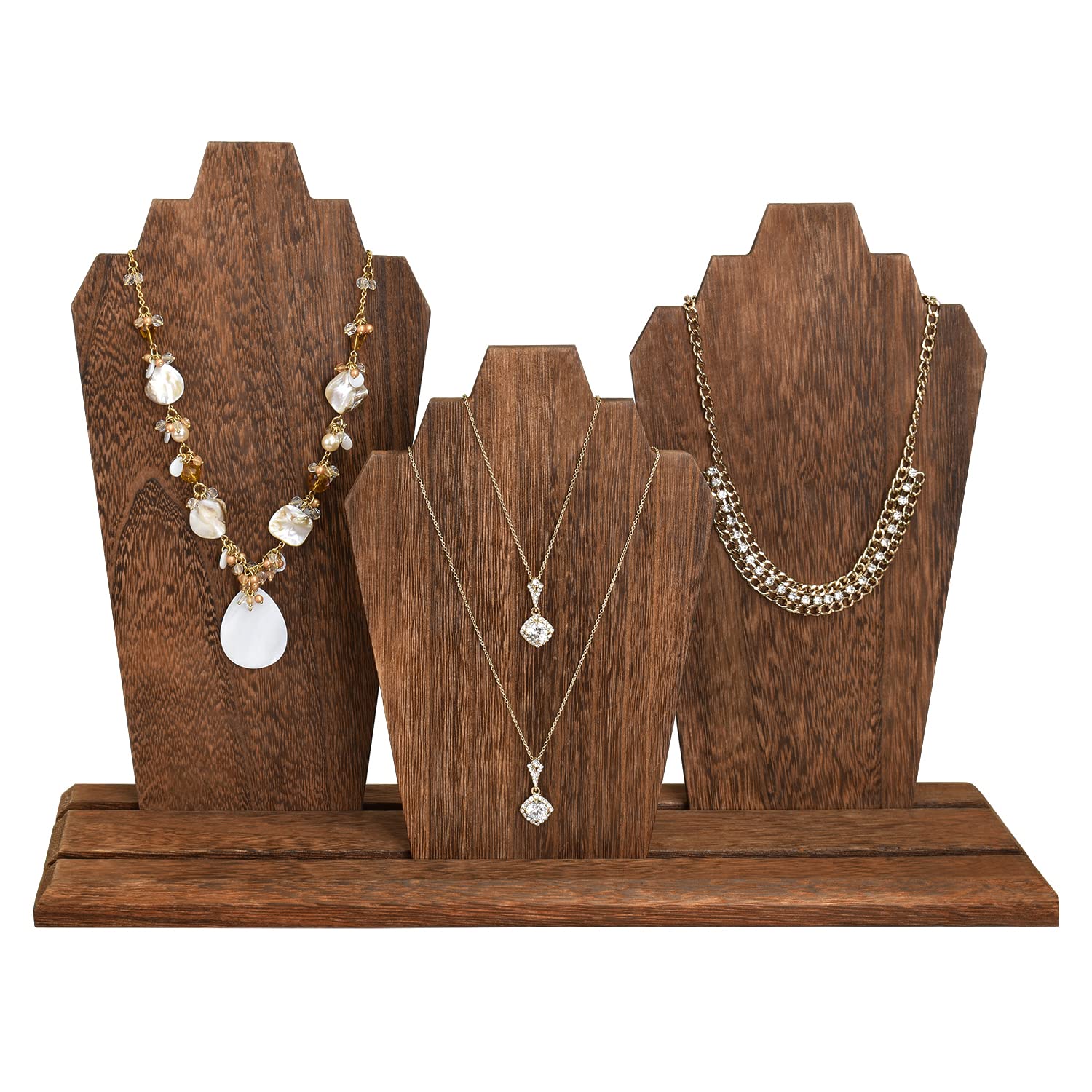 - WOODEN JEWELRY STAND - Featuring 3 removable wooden necklace displays and a two-row holder for you to arrange the boards as you like.