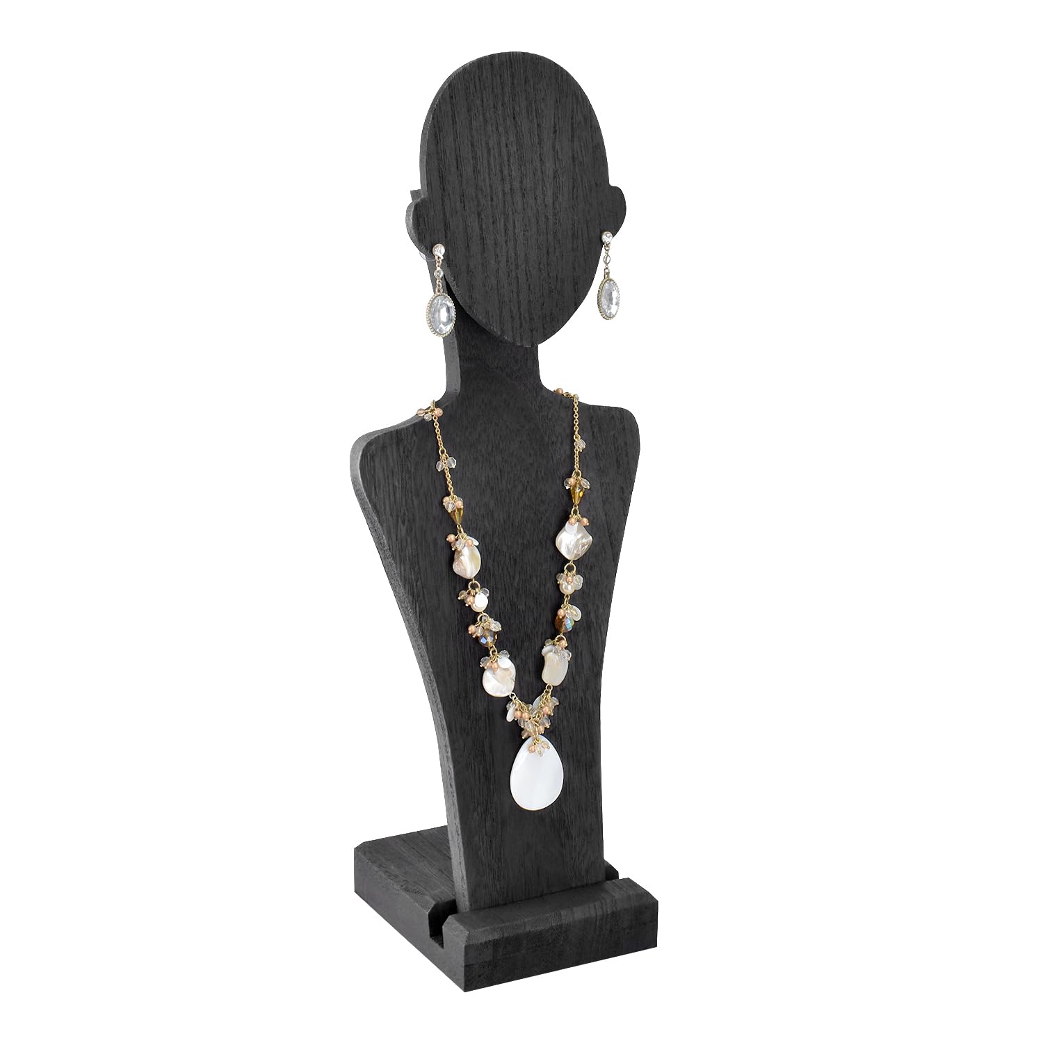 MOOCA Portable Wooden Mannequin Jewelry Stand, Jewelry Display Organizer for Earrings & Multiple Necklace, Black Color