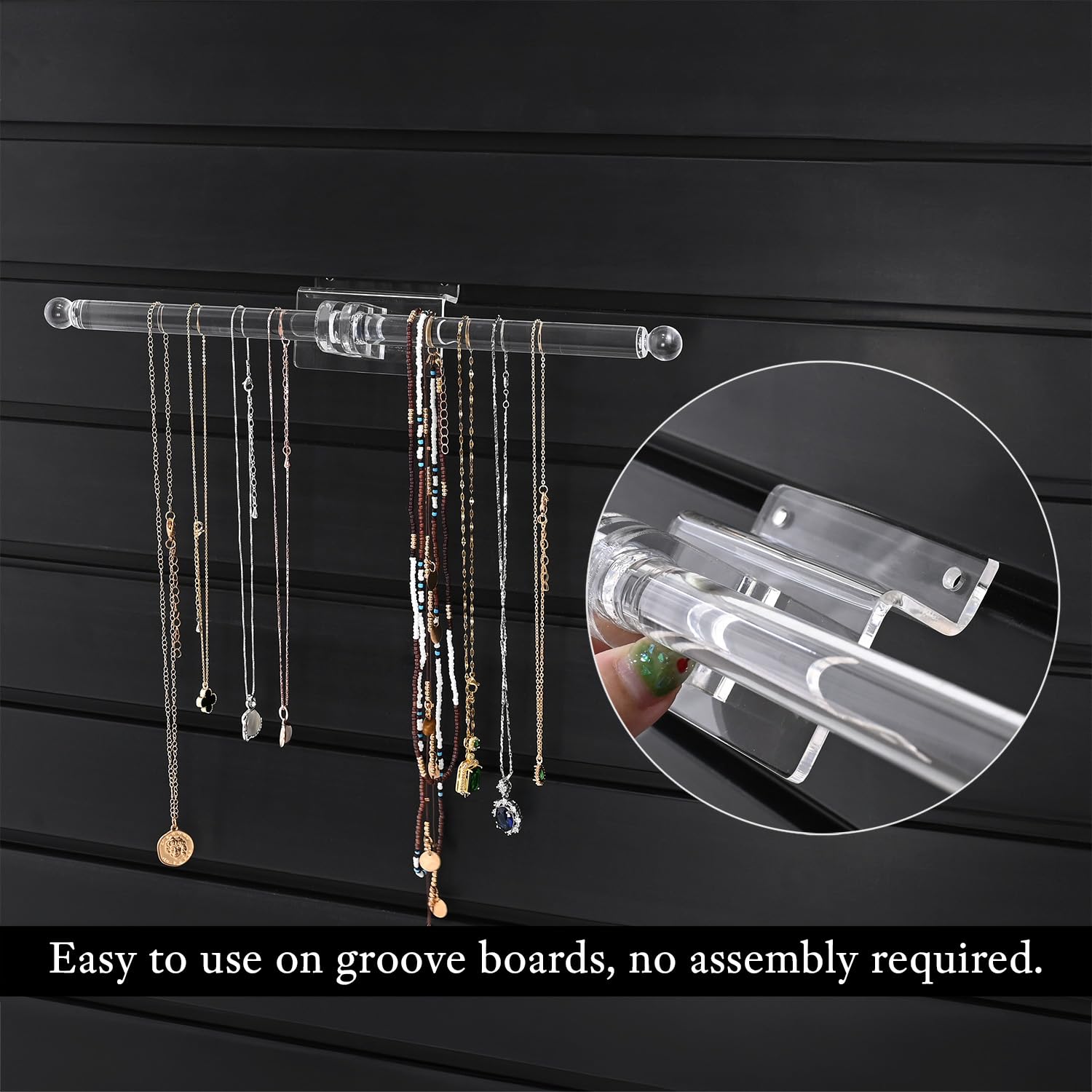 MOOCA Premium 2 Way Acrylic Slatwall Accessories Display & Wall-Mounted Jewelry Showcase for Dangling Jewelry Collection, Featuring Acrylic Bracelet Holder and Necklace Display