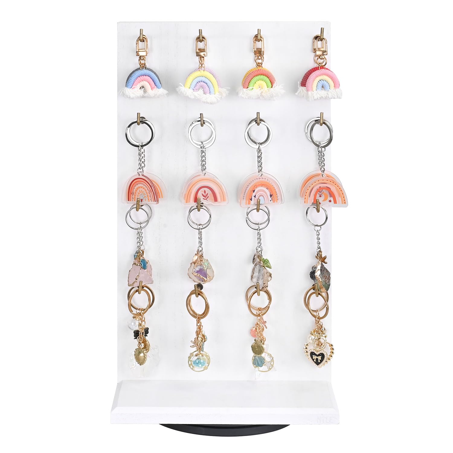 - KEYCHAINS DISPLAY - The display is equipped with 16 long hooks on both sides. The hooks are long enough to hold multiple jewelry cards, allowing you to spread out all your jewelry and accessories, a great solution to keep them tangle-free.